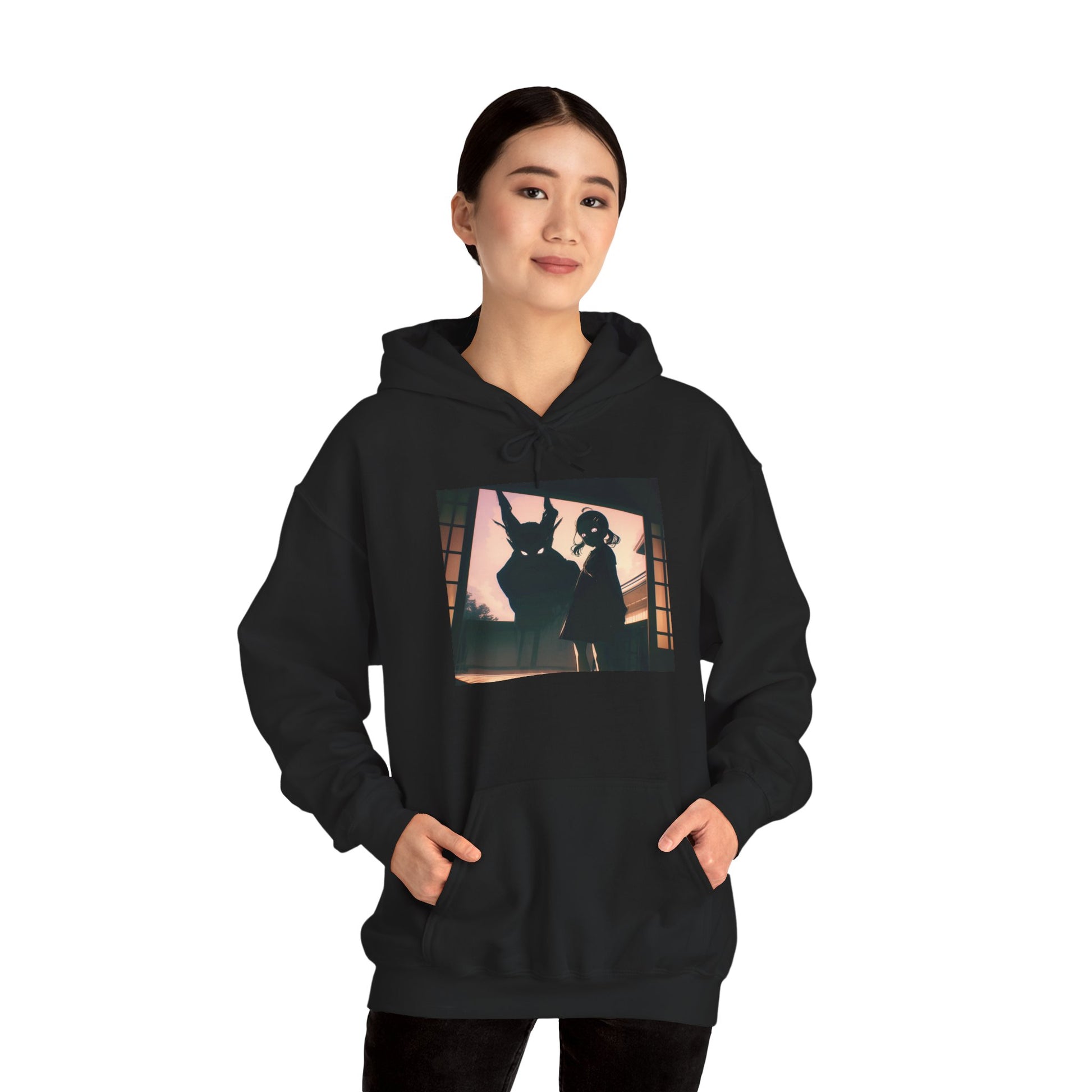 Slip into a hoodie built for late-night wanderers and city-dwellers. The front features a cinematic silhouette — two figures captured in warm, hazy backlight like a still from a lost scene. It’s intimate without explaining itself, giving the hoodie a quiet narrative you wear rather than announce.