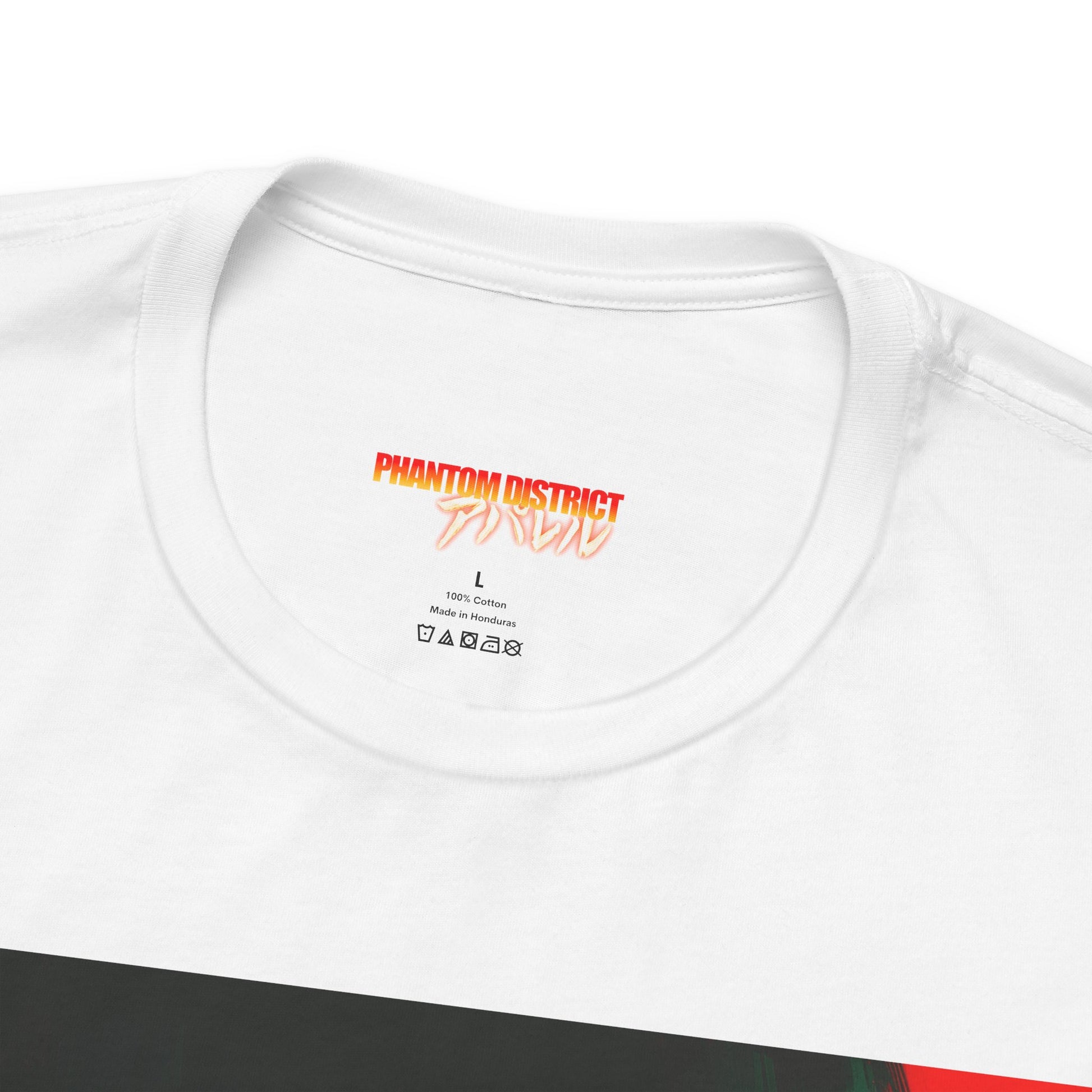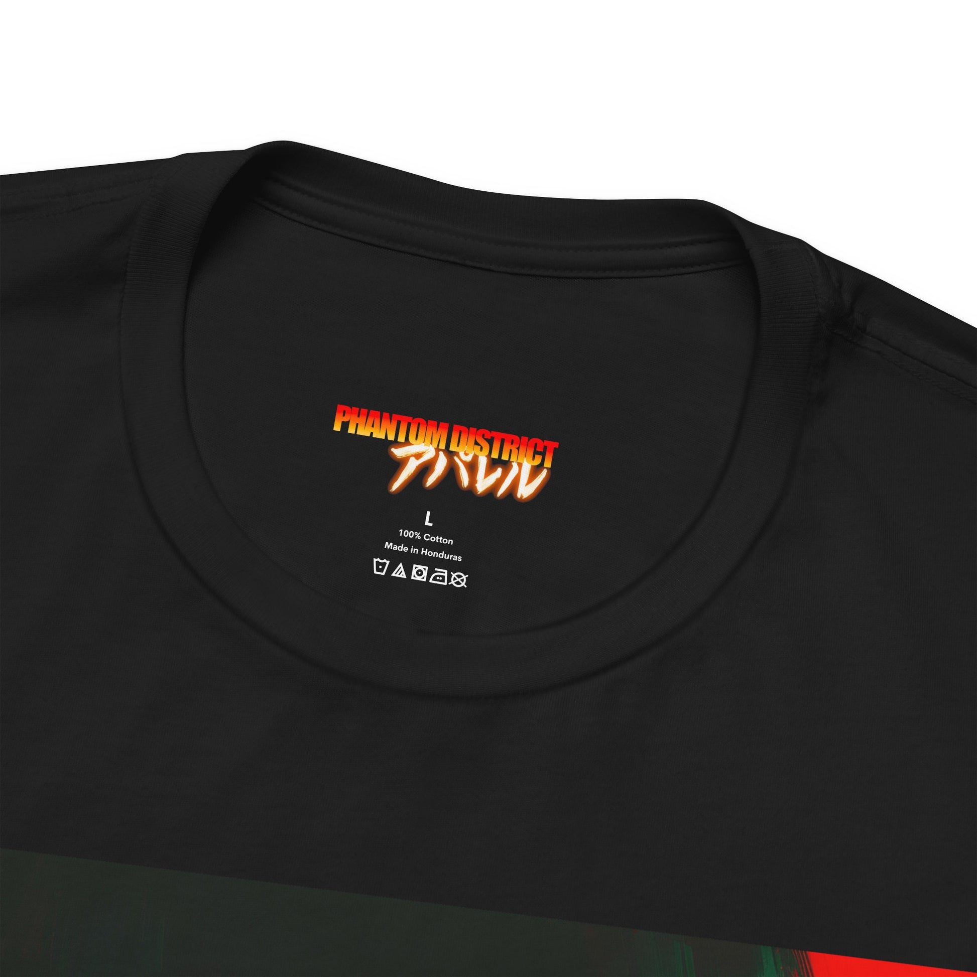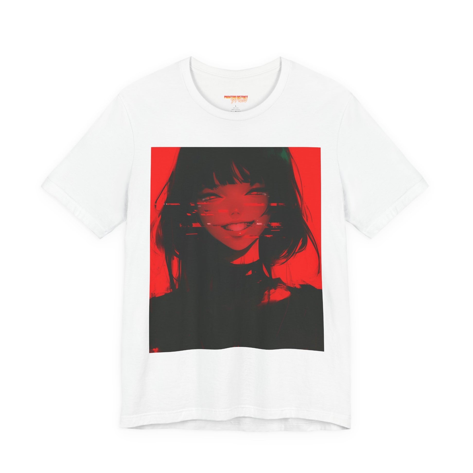 A lightweight, vintage-leaning tee built for late-night energy. The front graphic—deep black shadows cut with glitchy red—creates a sharp, cinematic mood, while the back carries a glowing “PHANTOM DISTRICT” wordmark paired with bold Japanese script for a cyber-street finish. Soft Airlume cotton keeps the shirt breathable and easy to layer, and the modern retail fit holds its shape thanks to side seams, reinforced shoulders, and a tidy ribbed crew neck. High-detail DTF/DTG printing locks in the contrast and color so the artwork stays striking over time.